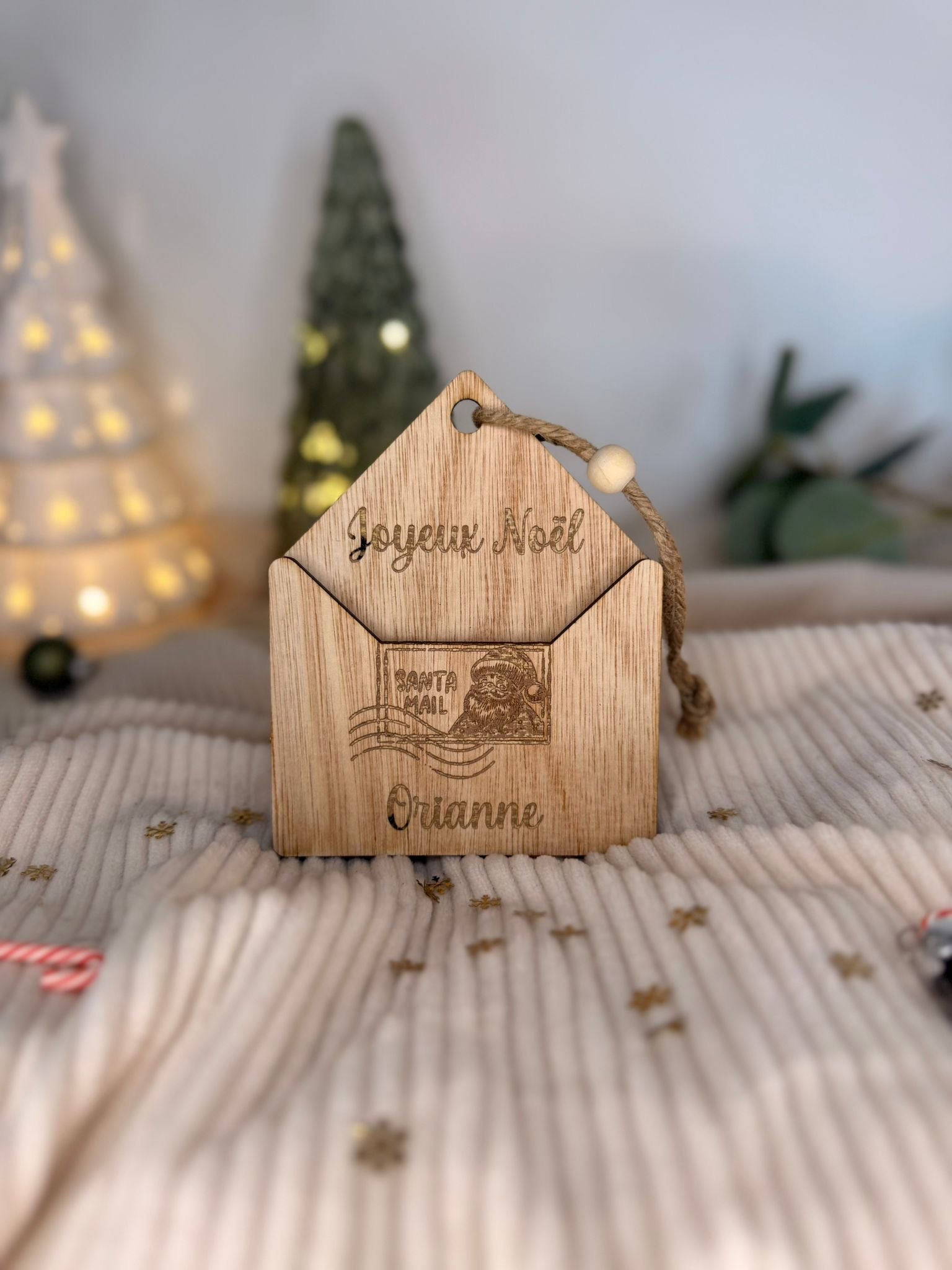 Ajoutez une touche magique au Noël de votre enfant avec cette enveloppe en bois personnalisable, spécialement conçue pour glisser une petite attention sous le sapin. Gravée avec soin et portant le prénom de l’enfant, cette enveloppe devient bien plus qu’un simple support pour de l’argent : elle incarne un souvenir unique et réutilisable, à accrocher fièrement dans le sapin année après année.